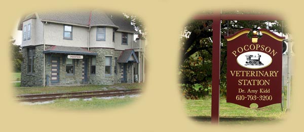 We are privileged to work in a very unique and historical setting. Our building was built in 1893 as a passenger station for the Wilmington and Northern Railroad, then following some conversion work it became the Pocopson Post Office in 1947. The facility was subsequently sold at auction during the 1970’s, then refurbished as a veterinary practice in 1991. Many original fixtures and features have been preserved, and today the property is listed in the Chester County Register of Historic Places. The train still visits us a few times each day.